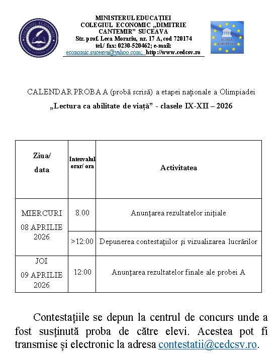 Olimpiada națională Lectura ca abilitate de viață – clasele IX-XII, etapa națională