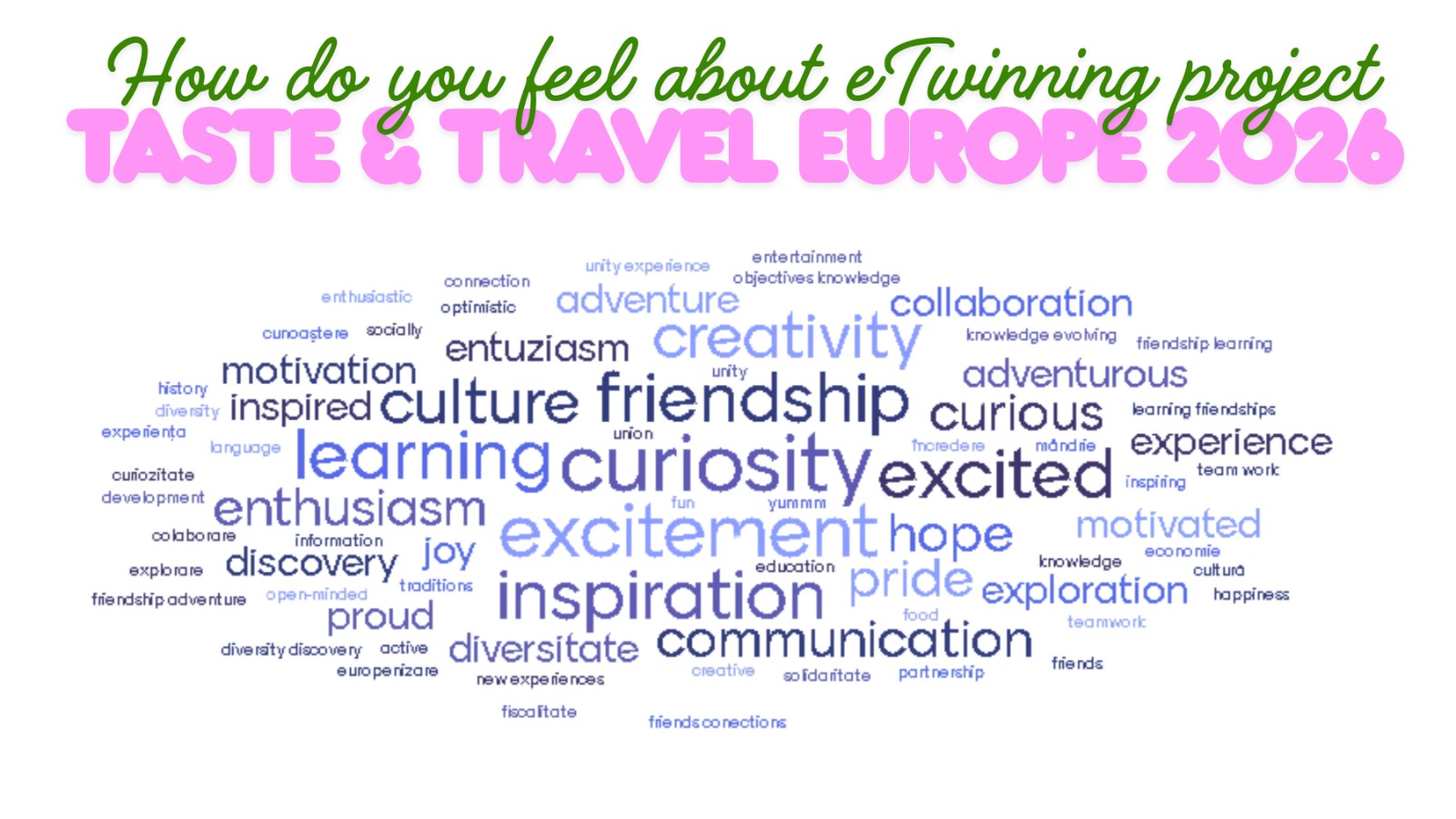 - martie 2026: Elevii, împărțiți în echipe mixte internaționale, vor pregăti „Fișe ale preparatelor” (rețete tradiționale, povești culturale și sfaturi pentru un turism responsabil).