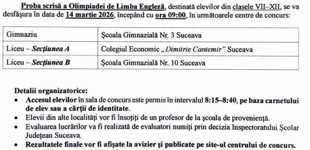 Olimpiada Națională de Limba engleză-Etapa Județeană-Secțiunea A,14.03.2026